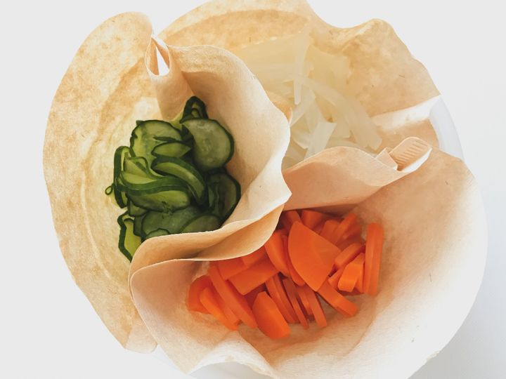 ポテトサラダやナムルなど、野菜の水分でベチャッとさせたくないメニューにもコーヒーフィルターは活躍してくれます。それぞれに下茹でなどが終わった野菜を入れておけば、フィルターが余計な水分を吸い取ってくれるので、味付けも決まりやすくなります。