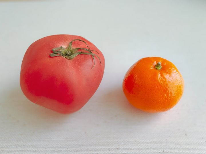 トマトと大きさを比較してみても、ご覧の通り。小さくて丸々とした形がかわいらしいですよね。