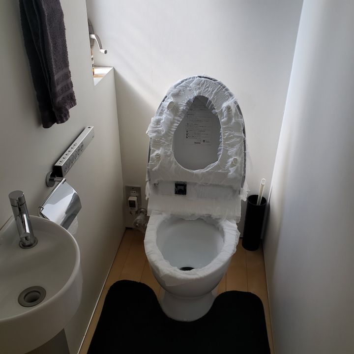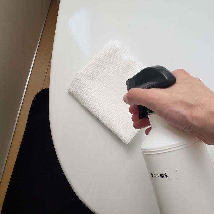 トイレットペーパーにアルコールを付けて、蓋や便座などをサッと拭きます。