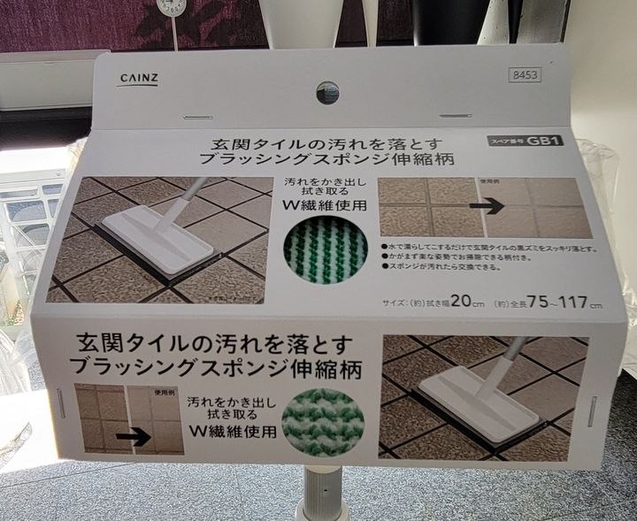 そんな時に見つけたカインズの玄関タイルの汚れを落とすブラッシングスポンジ伸縮柄。