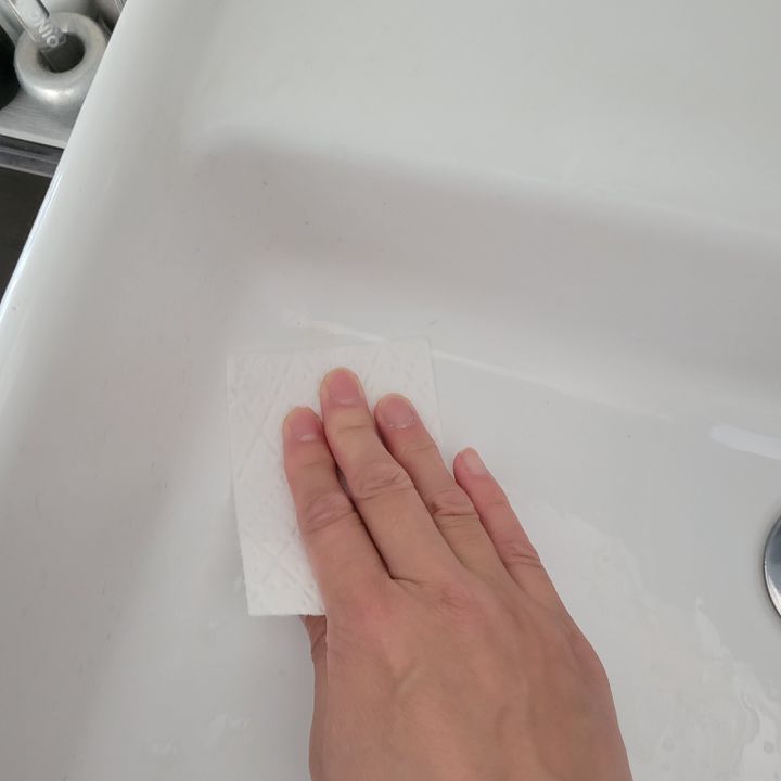 洗面ボウルももちろんピカピカに!このシートはクレンジング成分入り。おかげでツルピカになります!