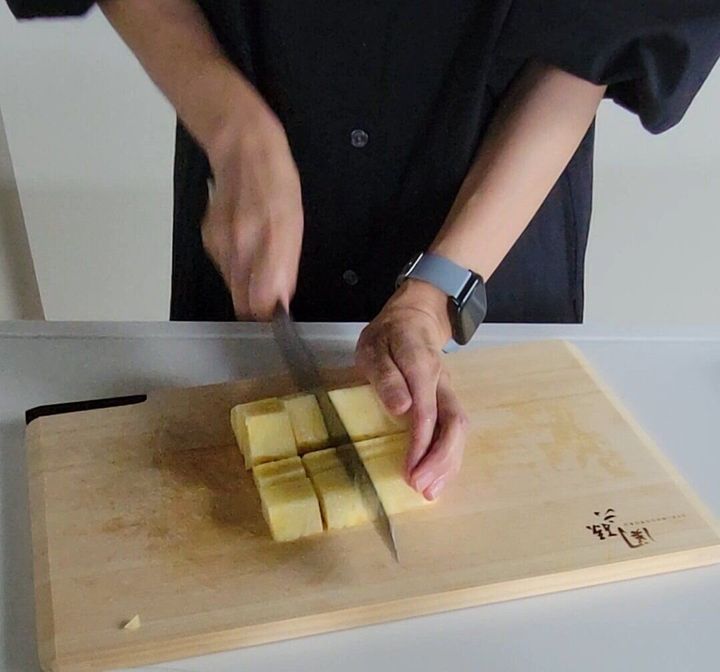 職場では限られた時間しかないため、どうしたら短時間でたくさんのカットフルーツを作って提供できるか考え、カット数を極限に減らして時短に努めた結果、今はこのカットの仕方で落ち着いています。