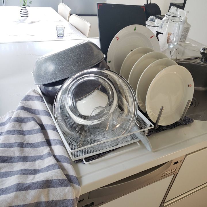 確かに便利です!洗ったものを一時的に置き、すぐに拭かなくてもいいわけですし、ほったらかしにしておけば自然と乾いてますから…。