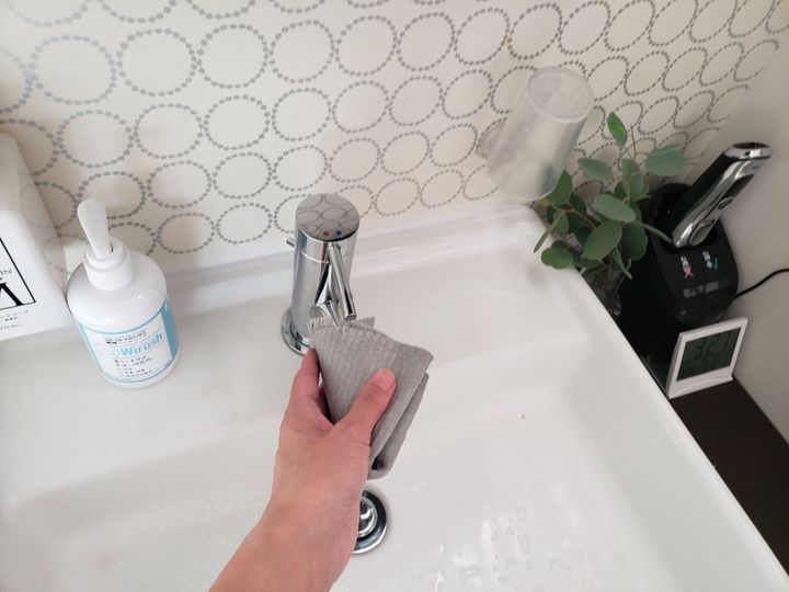 水分を残すことが水垢を作る元なので、今回はドイツふきんを紹介しましたが、おうちにある布でも何でもいいんです!とにかく1日に1回サッと拭けるといいかと思います。