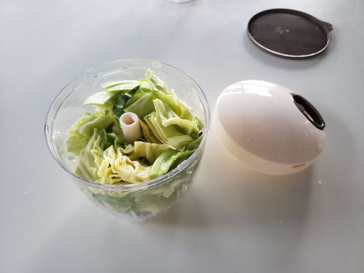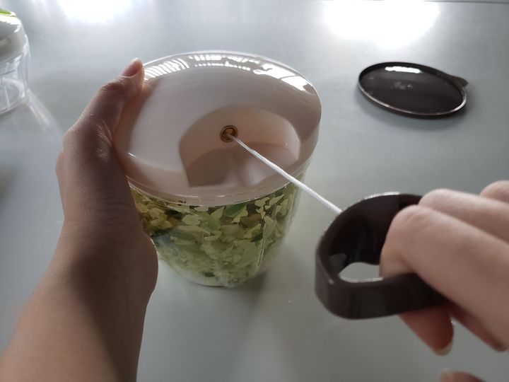 引っ張る回数でみじん切りの細かさを調整します。軽い力で引っ張ることができるので、お子さんのお手伝いにも使えそうです。