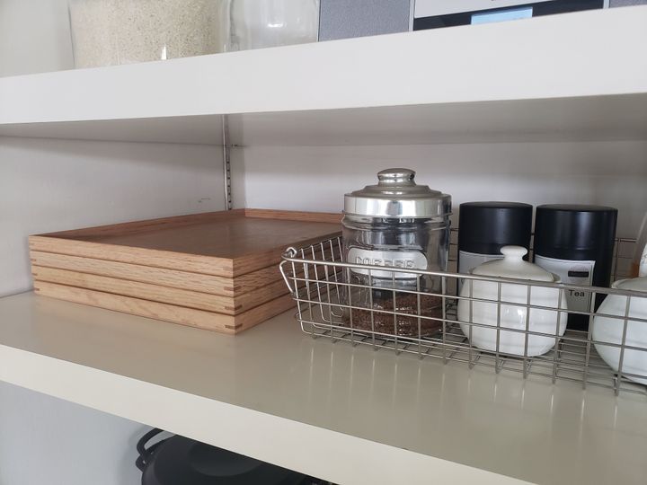 そんな我が家のキッチンでは、コーヒーセットをひとまとめにするのに使っています。