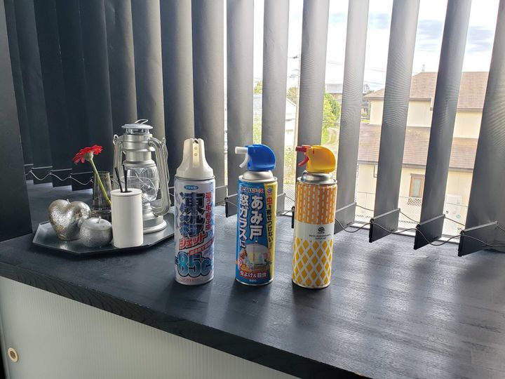 この他に、網戸に吹きかけて虫を寄せ付けないようにする虫こないアースも常備しています。