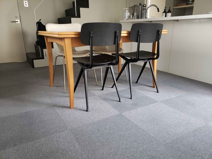そこで、2年前にリビング、ダイニング、キッチンにタイルカーペットを敷きました。