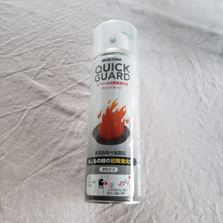 そこで見つけたのがエアゾール式簡易消火具、クイックガードです。