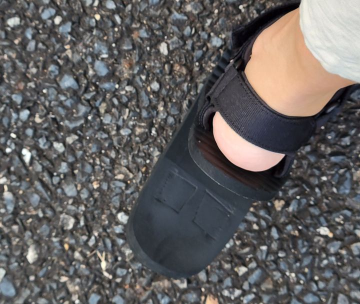 散歩している時に変な音がするな…と足を見てみると、かかと部分がパカーンと剥がれてしまったのです。