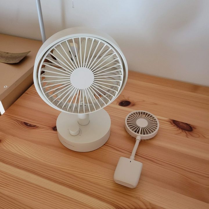 汗が止まらない!そんな時は大きな扇風機ももちろんいいですが、こちらはコードレスなのでどこにでも持ち運べることができるのがとても便利で重宝しています。