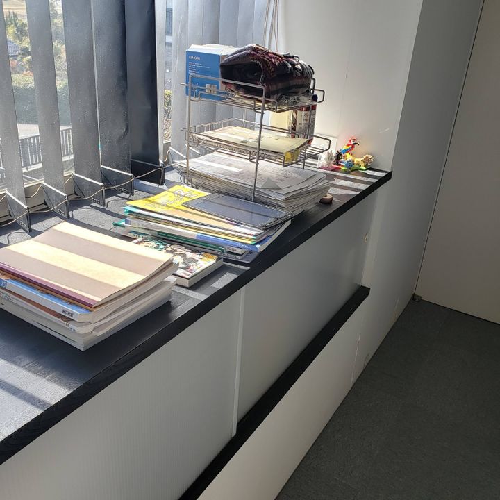 収納棚の上に教科書やプリントを置く癖がついてしまったので、それなら収納棚の一部を娘の収納スペースにしてあげようと思いました。