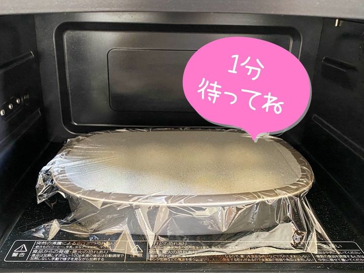 ふんわりラップをして600Wで4分レンジ加熱する。