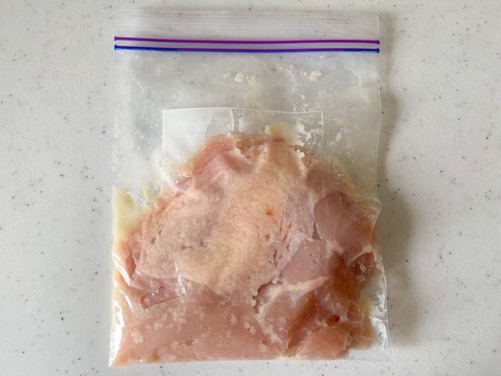 時間がなくてすぐ焼きたい!という方は、3分程しっかりと袋の上から揉み込んでから30分置いて焼いてください。