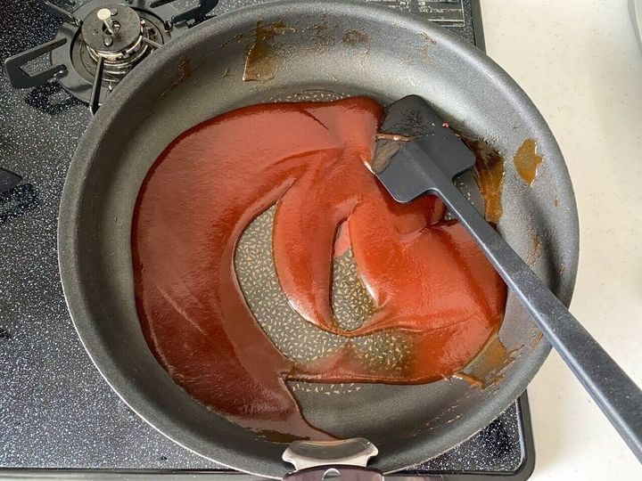 を入れて中火にかけ、ふつふつとしてとろみがつくまでスパチュラで混ぜる。