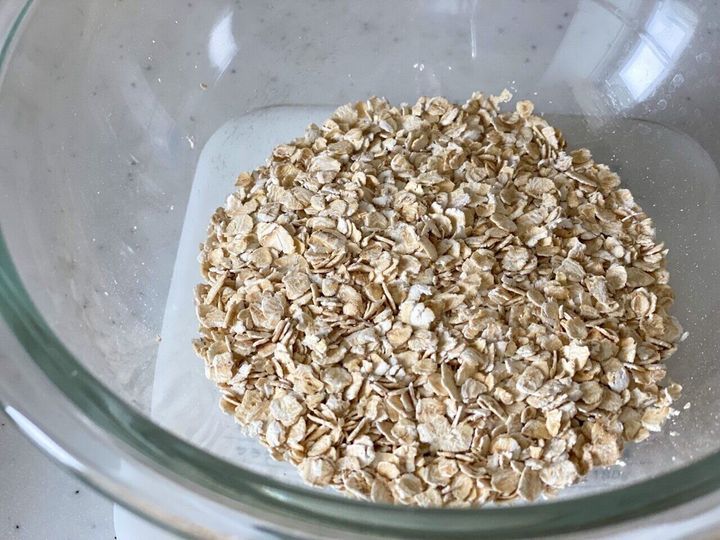 ※オートミールはかたいシリアル状のため、水分を吸収させてやわらかくするため10分ほど置きます。