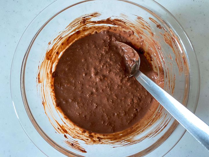 (1) オートミールとココアを合わせ、牛乳を加えてよく混ぜ、10分ほど置く。