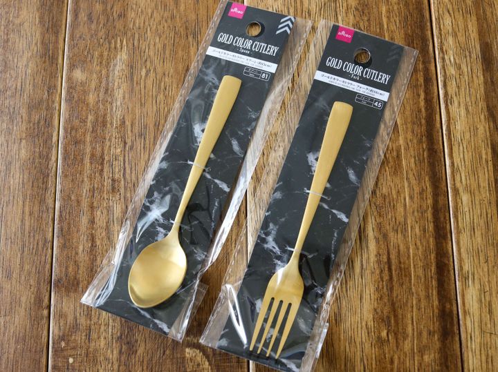 これを店頭で見かけた時は、思わず目を疑ったほどステキなゴールドのカトラリー。