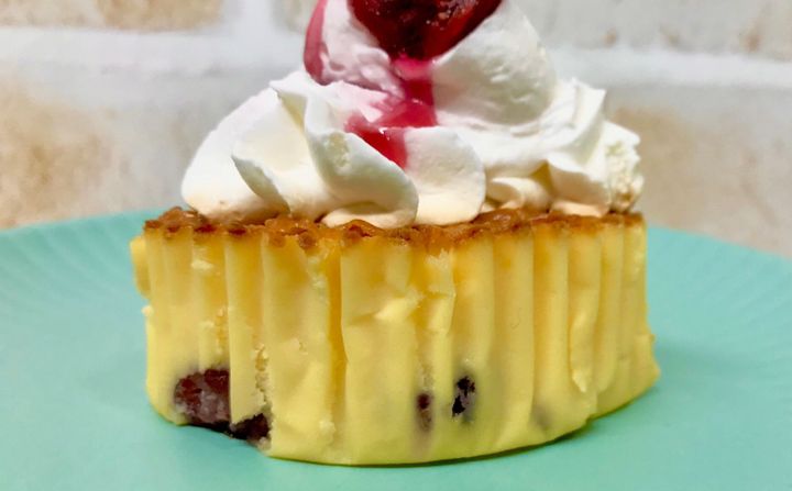 サワーミルククリームの中に3種のベリーのジュレが隠れています。サワーミルククリームとバスチーと一緒に口の中に入れると、贅沢な気分になれます。バスチー単体でも十分おいしいですが、トッピングによって、新たな感動を味わうことができます。