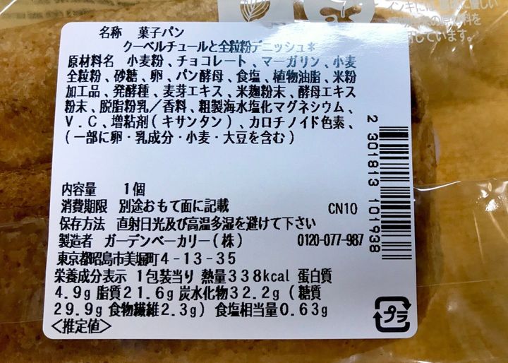 一方、糖質は全粒粉を使用しているので、普通のデニッシュと比べると控えめな数値となっています。