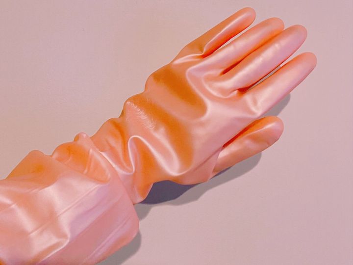 私はハンドクリームを塗ってゴム手袋をはめて