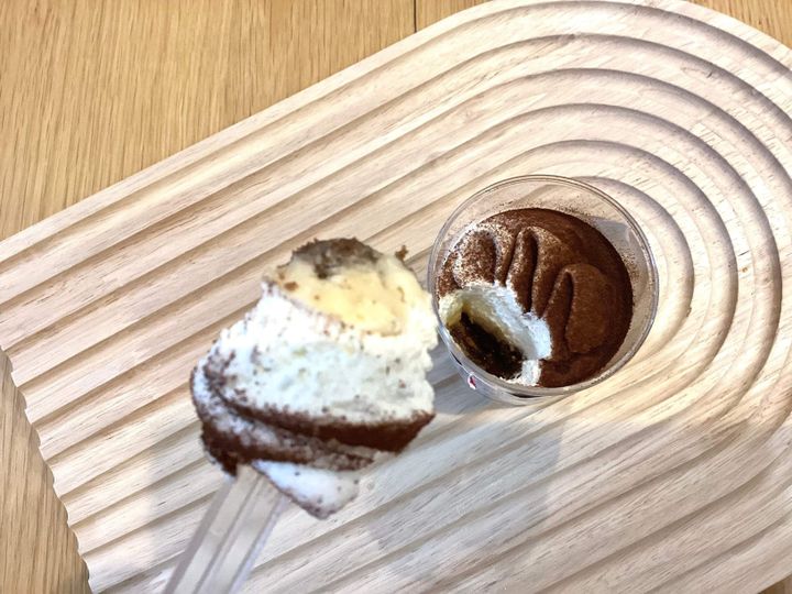 見た目は上のクリームの絞りとココアパウダーが可愛いティラミスです。