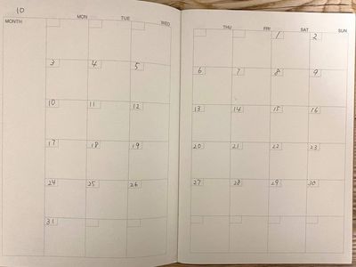 無印良品のノート・マンスリー(100円税込)を使っています。