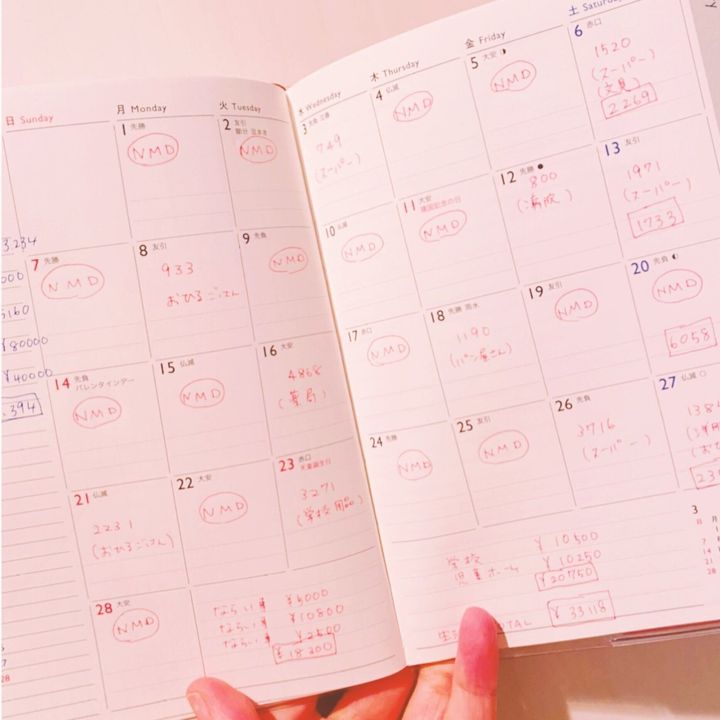 お金を使わなかった日はノーマネーデーという意味でNMDと記載しています。