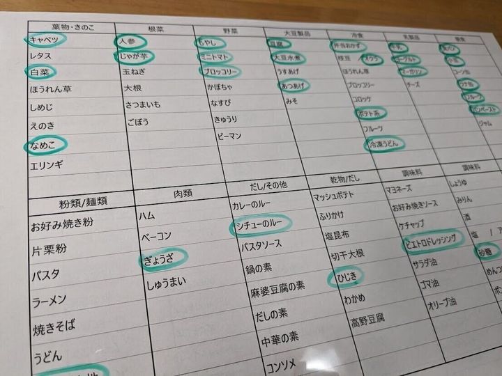 次回、購入するモノに「〇」をつけられるようにしました。