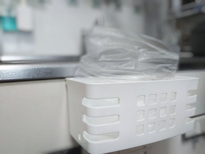 キッチンの壁に貼り付け、ポリ袋を入れれば、移動が可能な「生ごみ入れ」が完成です。