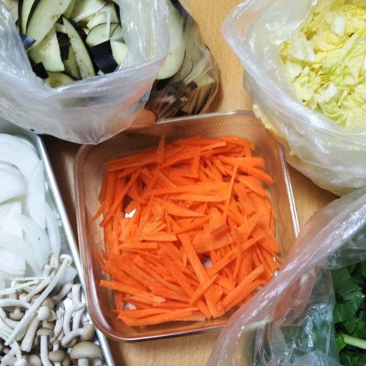 ・休日の作り置きや野菜をカットしておくなどの事前準備。