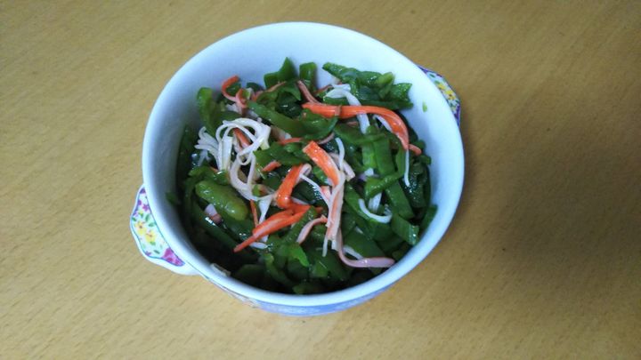 子供にはあまり人気がないピーマンですが、カニカマを入れることで、子供にも食べやすくなりますよ♪我が家の子供たちは、ピーマンが大好きです。