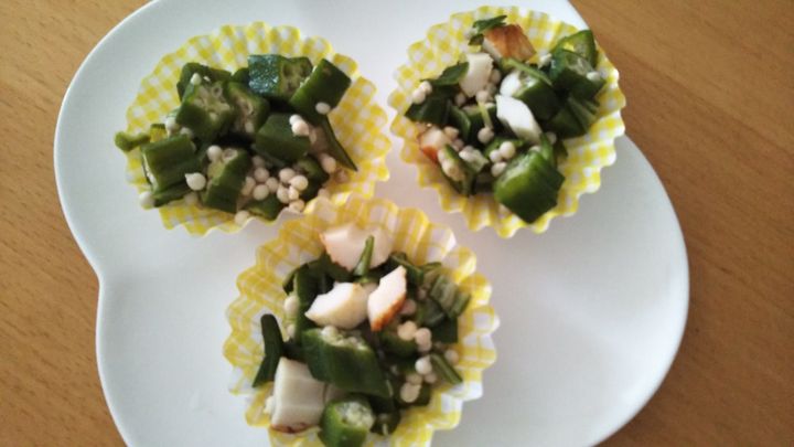 ③オクラを輪切りに、ちくわをお好みの大きさに切る