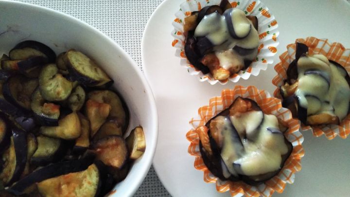①なすびにオリーブオイルをかけ、ざっくり混ぜる
