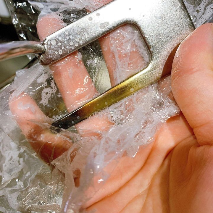 やり方は、サランラップを使ってひたすらゴシゴシするだけです。