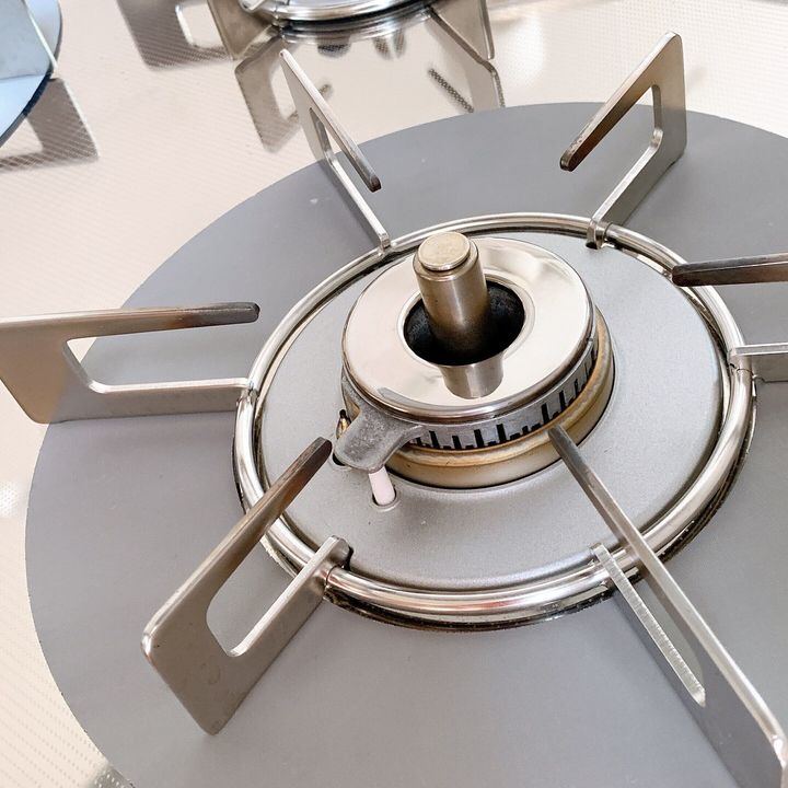 比べて見ても左のコンロだけ色が違うのがわかります。