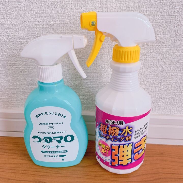 コーティング剤は、家の水回りならお風呂、トイレ、洗面所、キッチン、色々な所で使えます。定期的に吹きかけて洗い流すことで、輝きが蘇る感じがするし、汚れも付きにくくなります。掃除をラクにするという意味でも、優秀なアイテムです。