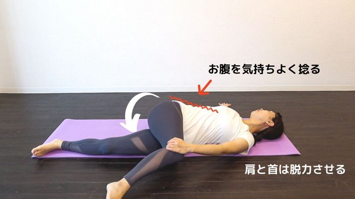 *無理に膝を胸に近づけないように、気持ちよく下っ腹が圧迫できているところでキープしましょう。