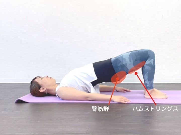さらに、お尻の臀筋群も程よく使いながらキープすることで、ディスクワークで衰えたお尻と脚を鍛えていきます。