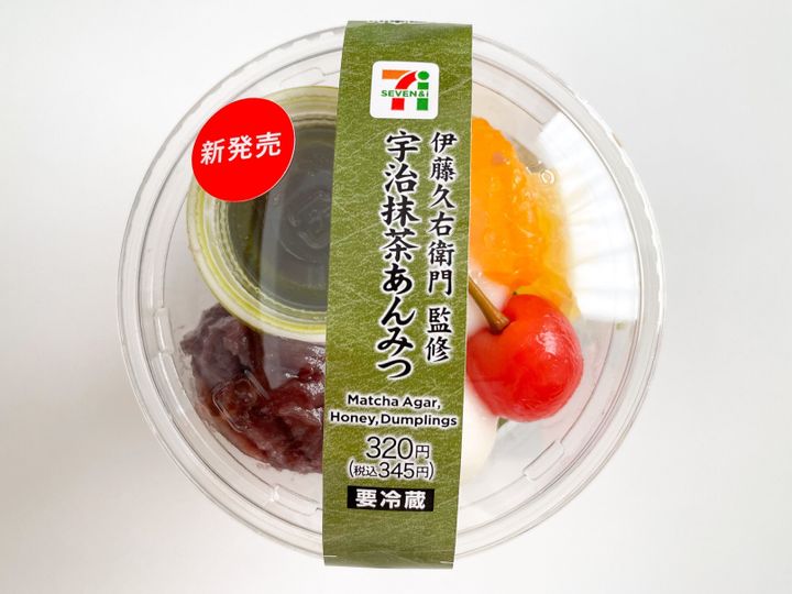 セブン-イレブンで新発売された「宇治抹茶あんみつ」は、税込で345円、カロリーは185Kcalです。