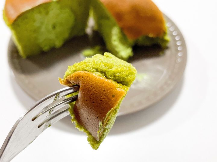 次に甘めの抹茶クリームが口いっぱいに広がり、カステラのふわふわと、抹茶クリームのとろとろが口の中で楽しめます。