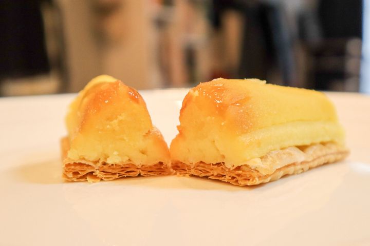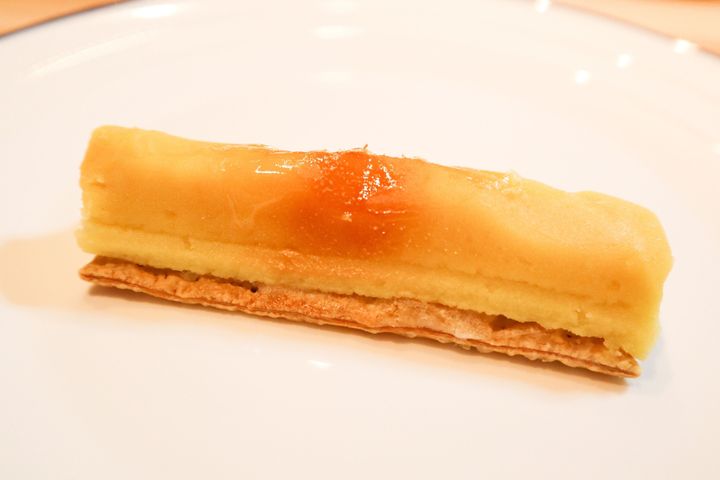 口の中ではトロッとした食感と、しっとりした食感の2つの食感が広がります。さらにパイ生地のしっとりで、気持ちサクッとした食感もあります。