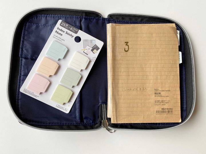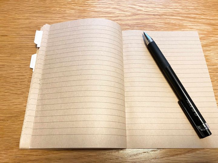 この雑記帳に、毎日のSNS投稿や音声配信のネタや記事投稿のアイディアなどを自由にメモしています。今回はこの無印のコスパ最強雑記帳をご紹介したいと思います。