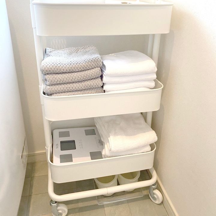我が家では、IKEAのロースコグというワゴンを利用してタオルを収納しています。