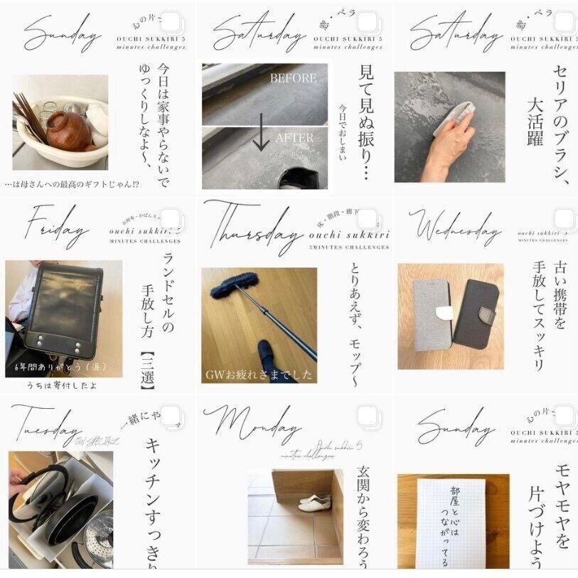 おうちをすっきりさせるためには、日々ちょっとずつでもコツコツ整えていくことが欠かせません。曜日の漢字や順番などから連想して場所を決めてみました。