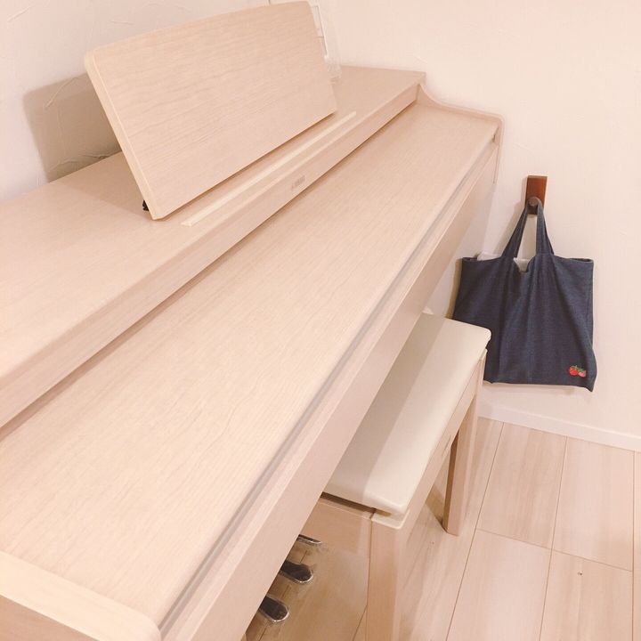 小4の娘がピアノを習っていて、そのレッスンバッグをピアノのすぐそばに掛けています。