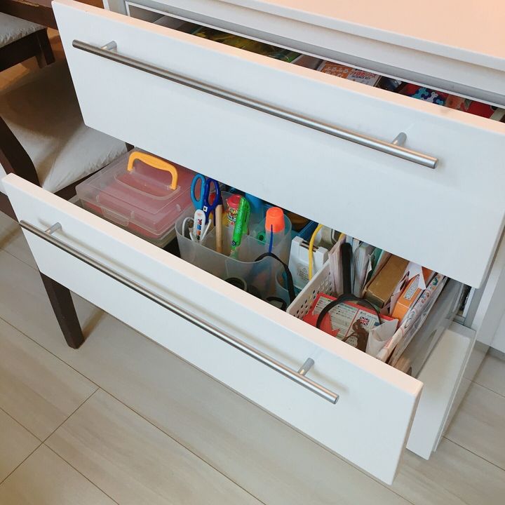 それでも個人のものを置きたい場合は収納スペースに応じて、収納を確保します。我が家では子供たちには一人一つずつ引き出しを与え、自分で管理してもらっています。