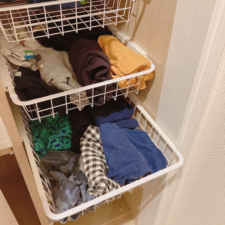 特に幼児になれば、子供も自分で自分の洋服を選び、自分で着替えることができるようになります。子供が使いやすい引き出しのポイントは詰めすぎないこと。ほどよいゆとりがあると子供も服を選びやすくなります。また、トップス、ボトムス、シャツとカテゴリーごとに分けてあると子供にとって分かりやすい収納になります。