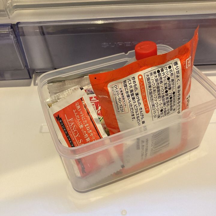 また冷蔵庫の中でバラバラになりがちな小さな調味料やソースなどはまとめて小さな箱に入れておきましょう。忘れられがちなので、定期的にチェックして早めに使い切ることが大事です。