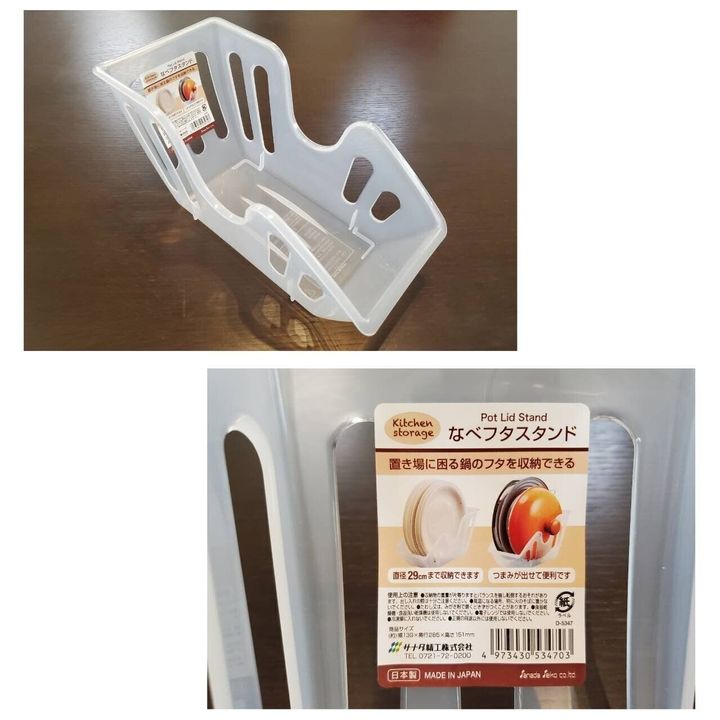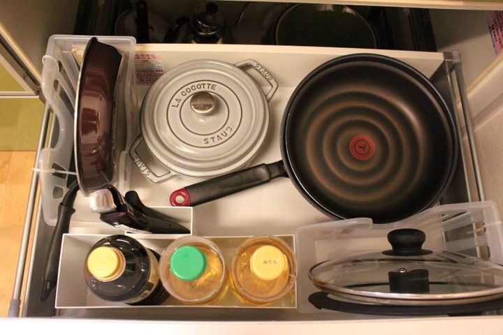例えばこのようにフライパンや大皿も立てて収納できるのでとても便利です。